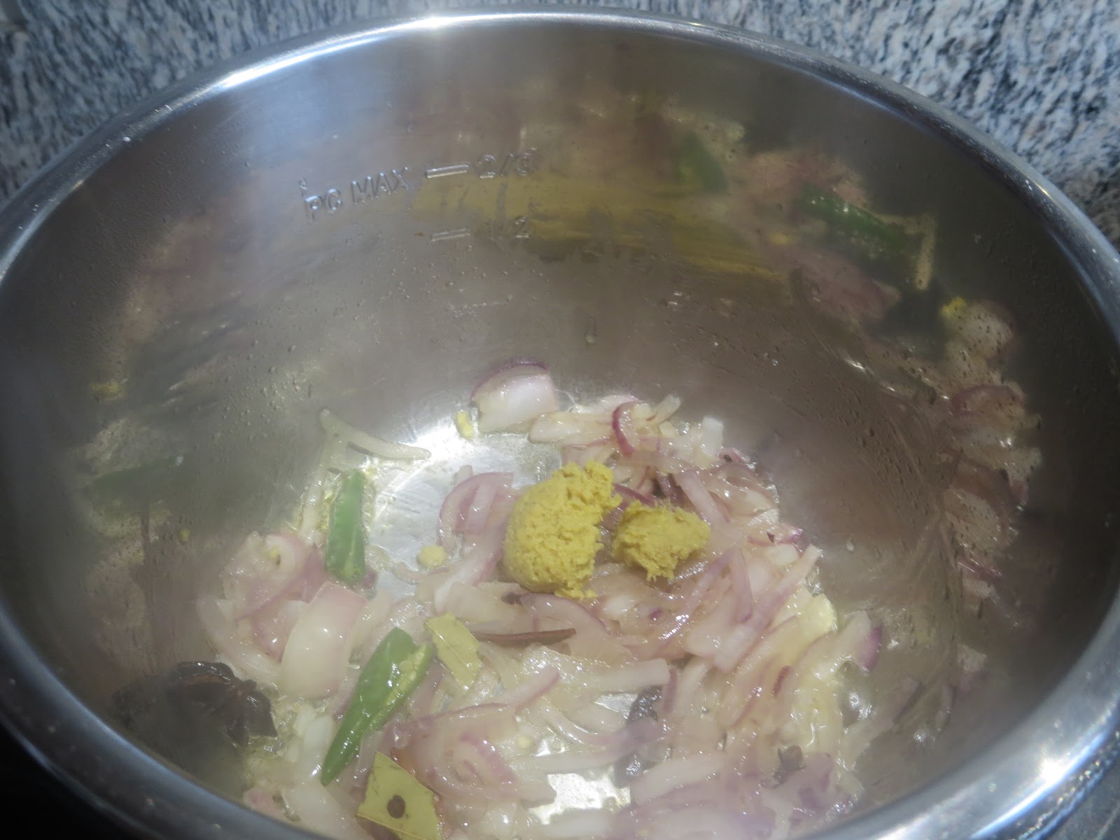 4. Add ginger garlic paste and saute till the raw smell goes.